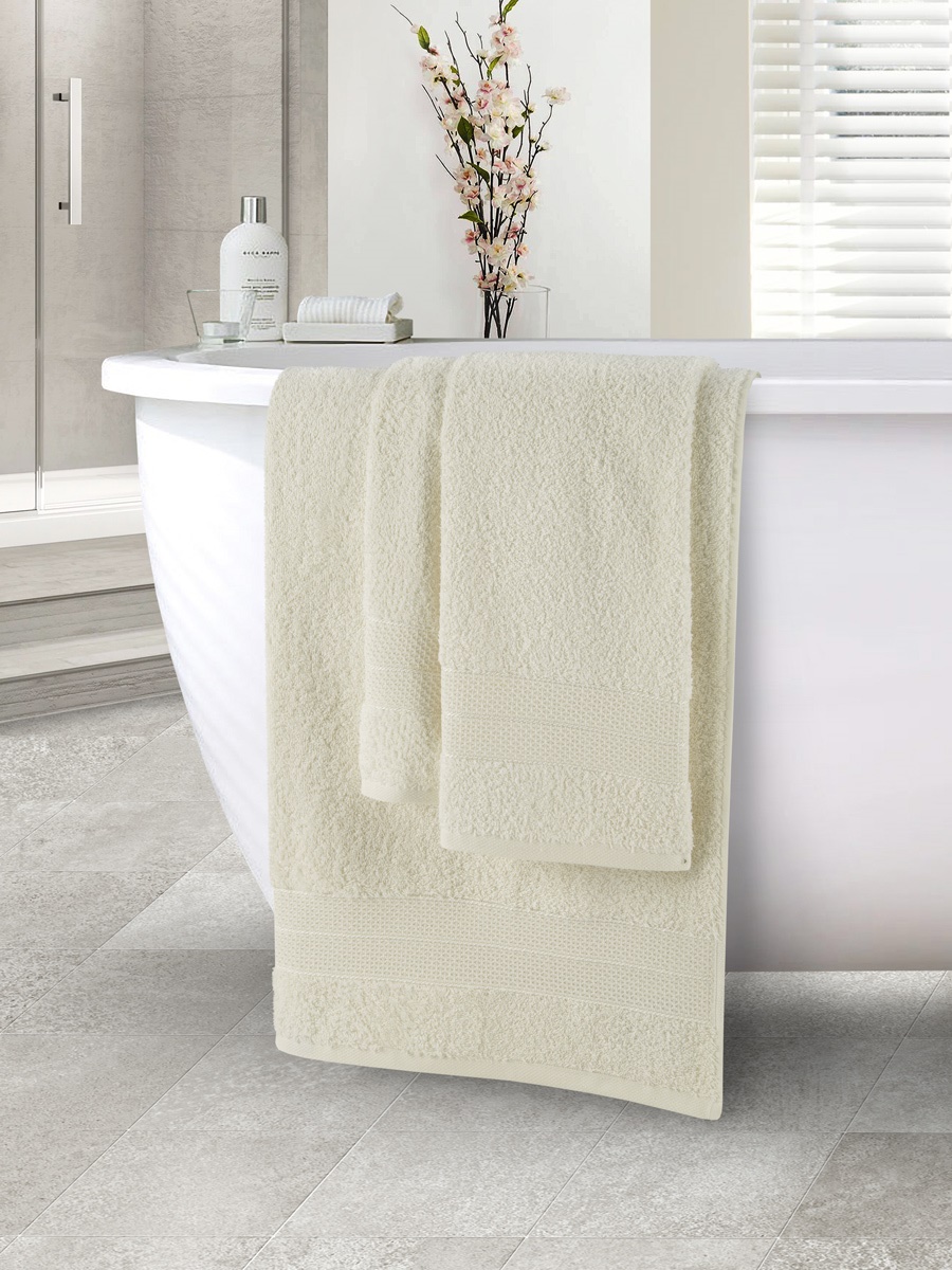 Набор полотенец махровых Milky, без рисунка, молочный