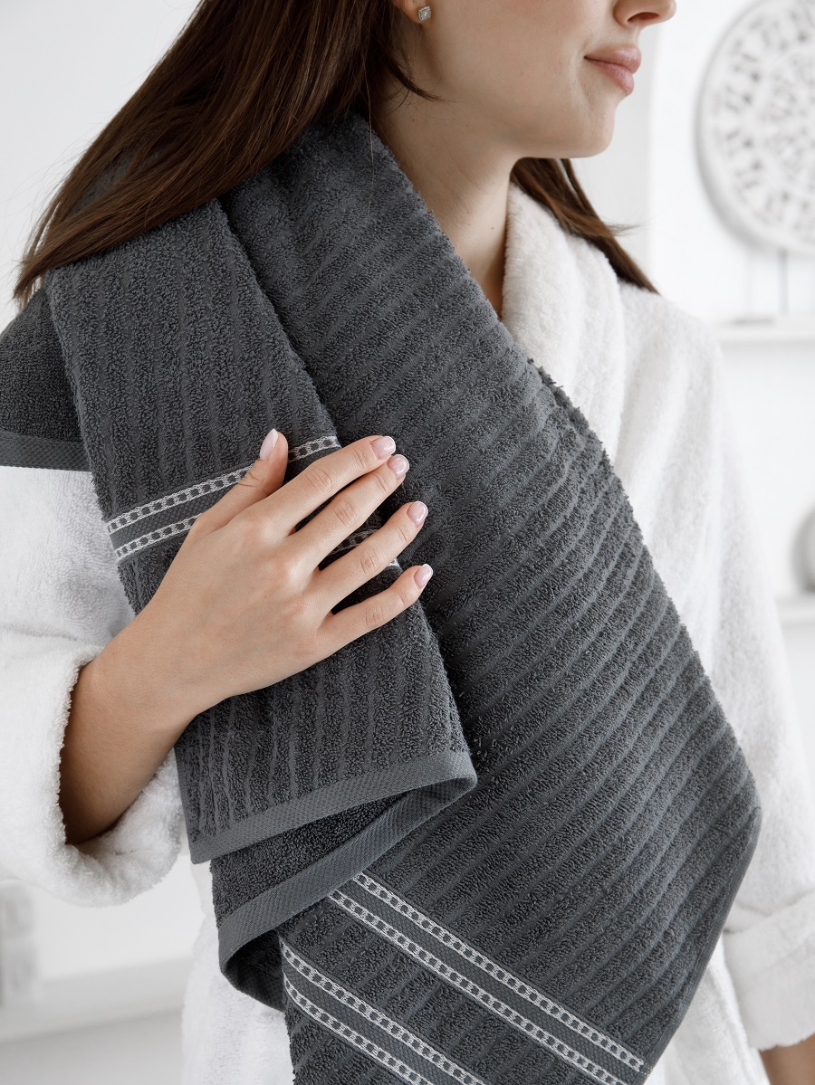 Набор махровых полотенец Grey & blue от Гутен Морген имеют оптимальную плотность, они легкие, мягкие, приятные на ощупь, отлично впитывают воду, быстро сохнут.