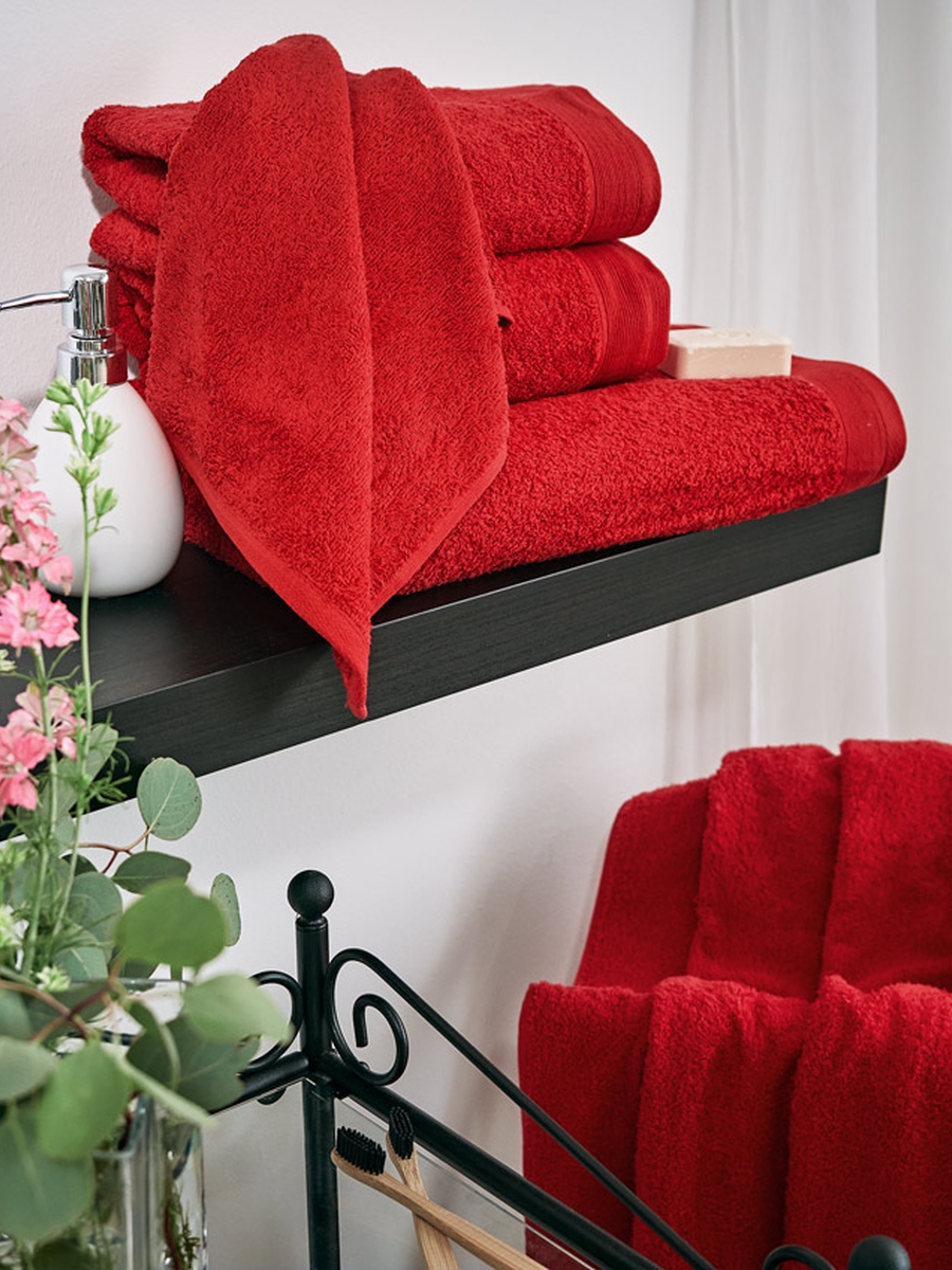 Красный – цвет страсти, любви и энергии. Поэтому с махровыми полотенцами Red из готового решения Кардинал каждый ваш день будет удачным и радостным