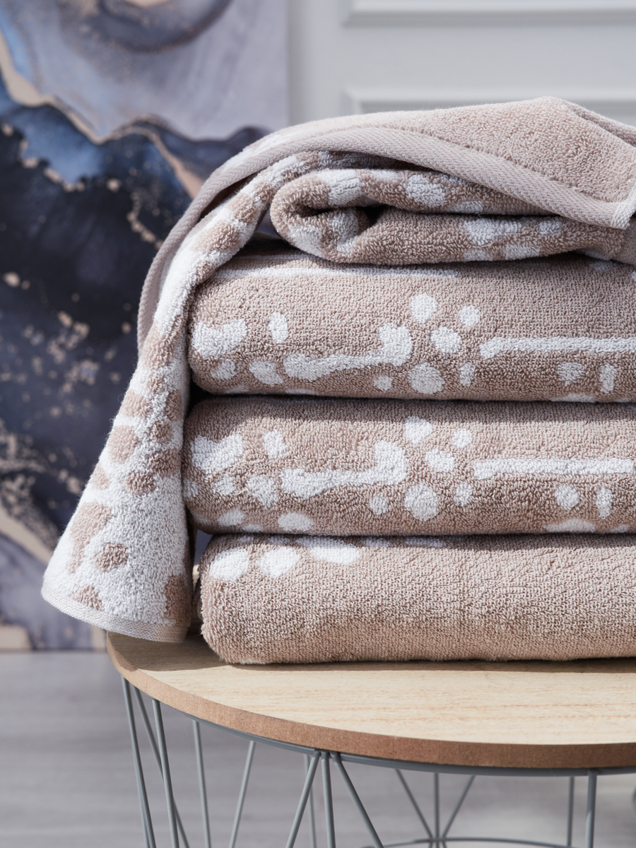Полотенце махровое Cortaderia, веточки, бежевый