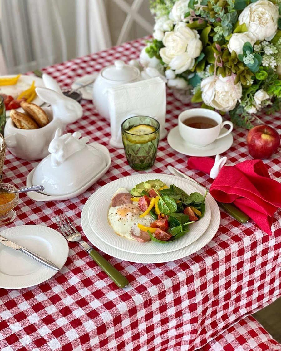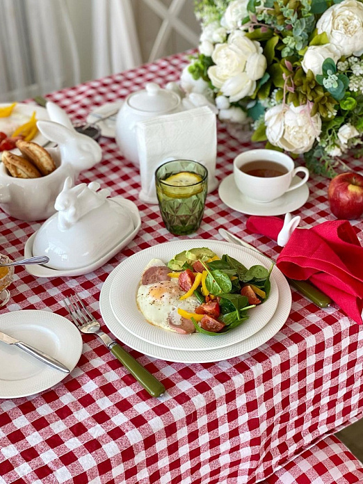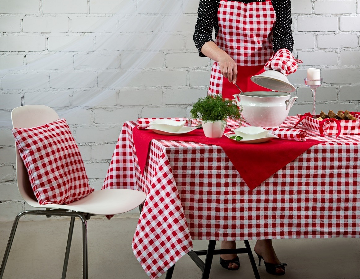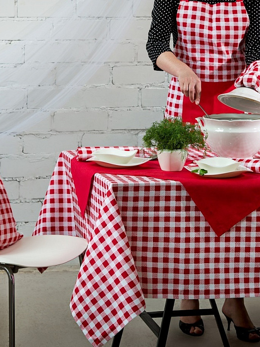 Какой семейный обед или ужин без скатерти? Стол, накрытый скатертью Red check из готового решения Гутен Морген сразу придает ужину нарядный вид, нотки уюта, комфорта и безопасности.